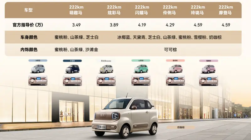更好玩,提供百变个性的舞台。 车内中控台是能随意拼插的积木空间,车外支持超过100种个性化定制方案。从7种梦幻外观色到4种时尚内饰色,从浪漫的蜜桃粉到沉静的天青黛,总能找到你的专属风格。