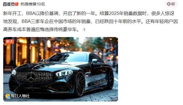 BBA销量跌回十年前,年轻人后悔了,这背后是市场格局的深刻重构——不是消费者抛弃了BBA,而是“豪华”的定义权已经易主。