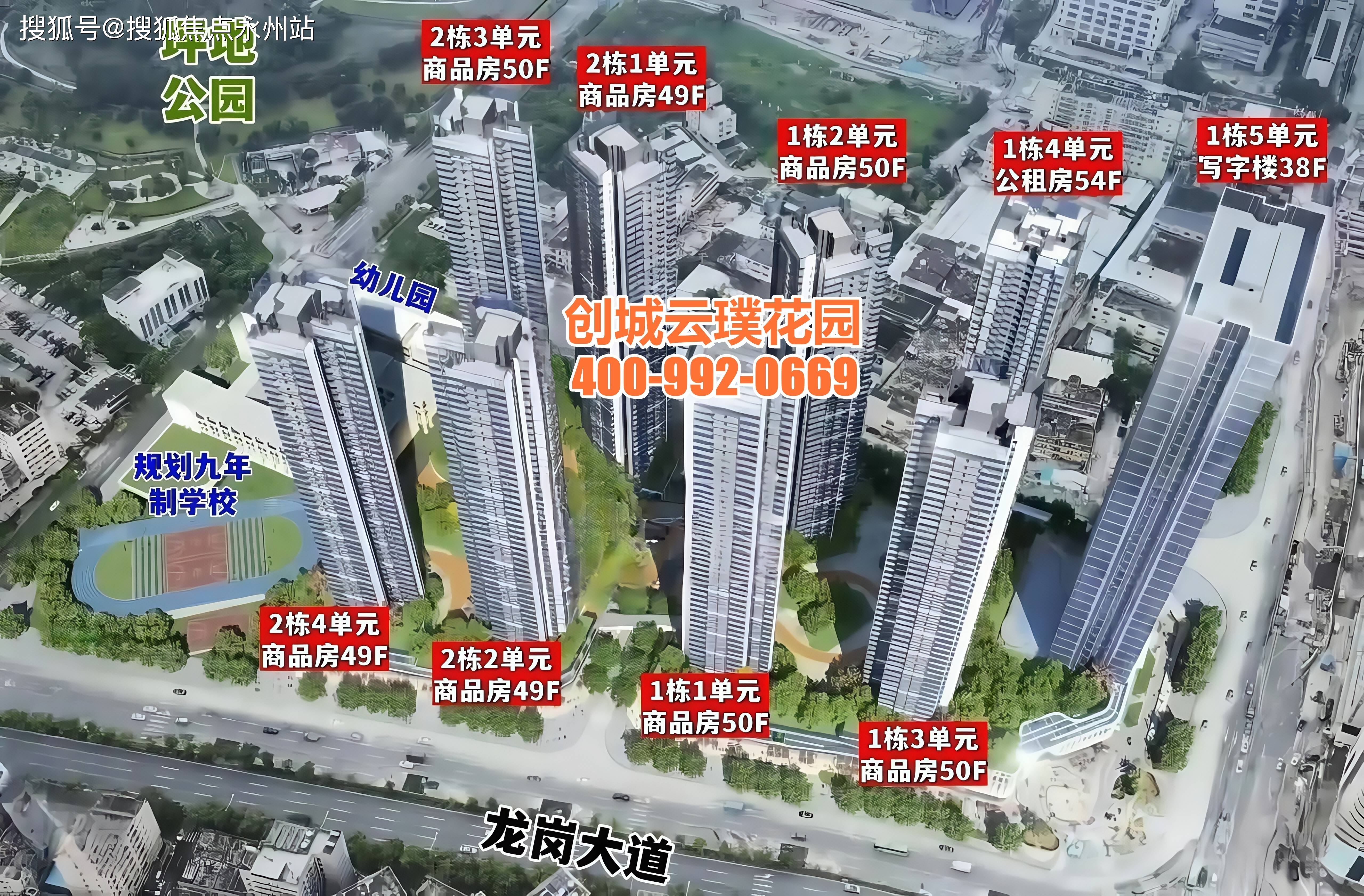 楼栋规划:9 栋超高层建筑(50-54 层),含 2212 套商品房、394 套公租房、1 栋办公酒店