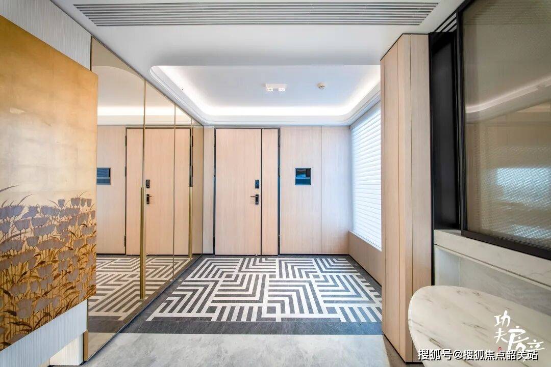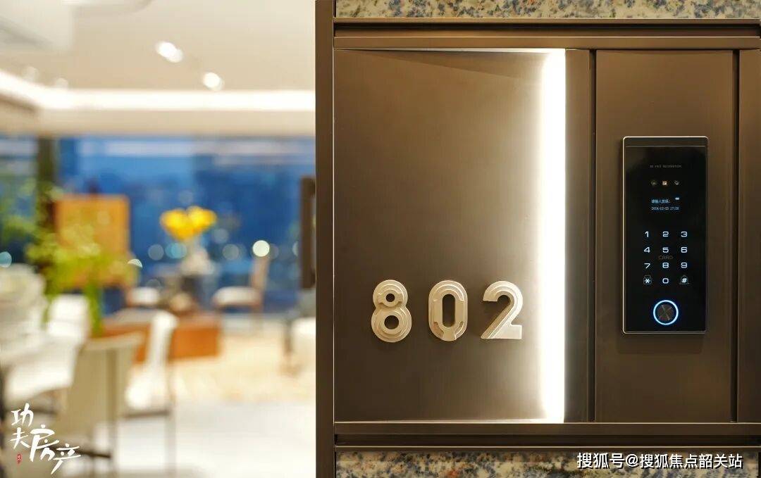 入户大门极具美感的设计语言,将归家流线上的美学体验进行了延伸;分体嵌入式智能门锁,打开的时候仿佛在开高级保险柜,尊贵感十足。