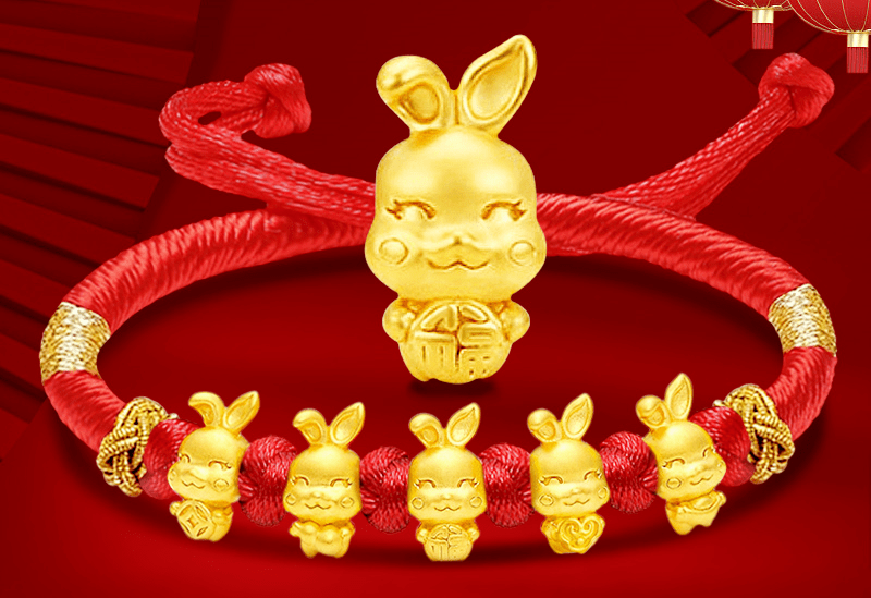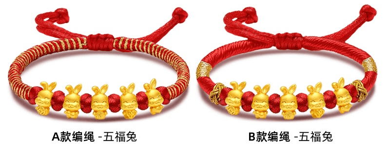 2023选这款五兔送福手链为开年礼,一条融合红绳+生肖+黄金3重好意!祈盼自己新的一年万事顺遂、财源滚滚、日子红红火火!