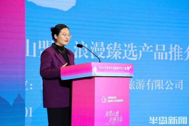 青岛海誓山盟文化旅游有限公司企划经理陈岩进行“海誓山盟·浪漫臻选产品推介”。公司深耕婚恋文旅赛道,以“海誓山盟·浪漫青岛”城市IP为核心,落地安娜别墅、海上云端书咖等网红项目,构建起流量端与产业端双向发力的婚恋文旅产品体系,助力青岛甜蜜经济发展。公司布局六大品牌门店并实现差异化定位:安娜别墅主打爱情打卡与特色餐饮,心屿依托燕儿岛资源打造求婚及目的地婚礼核心场景,海浪咖啡融合咖啡与爱情美学提供求婚告白场地,海上云端、圣罗尼克庄园、情人坝灯塔也各有特色,覆盖求婚、婚礼、纪念等全婚恋场景。在服务上,海誓山盟文旅推出求婚、婚期影像、目的地婚礼等六大产品品类,打造十大求婚场地与婚礼场地,提供从场景布置到影像记录的一站式服务,还能结合文旅资源为新人定制游玩体验。作为青岛市甜蜜经济产业协会执行单位,公司整合行业资源,为新人提供接机送机等全流程服务,立足“遇你”“与你”等四大爱情符号,面向全年龄段打造全周期爱情服务体系,持续推动青岛婚恋文旅产业升级。