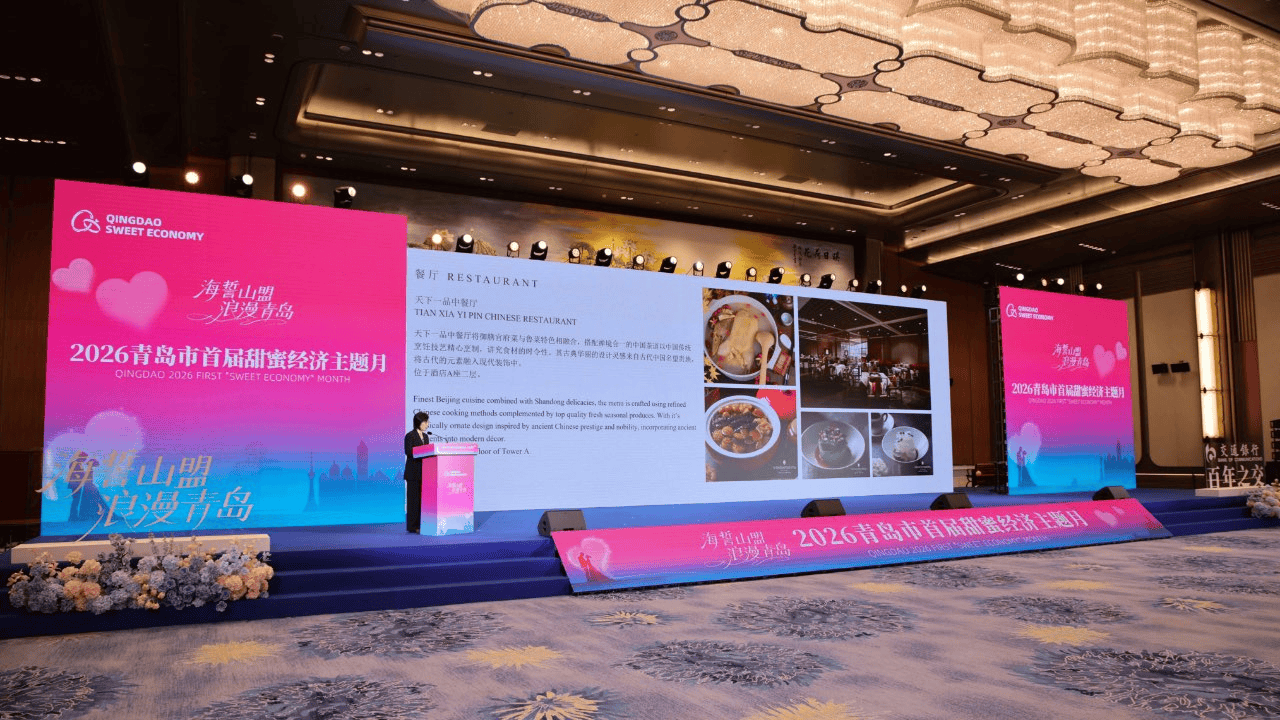 官方网站2026年1月1日下午2点,青岛国际会议中心尚和厅灯光璀璨、氛围浪漫,2026青岛市首届甜蜜经济主题月·甜蜜经济产业链推介会正式拉开帷幕。作为青岛首次以主题月形式打造的甜蜜经济盛会,活动汇聚了政企学界代表、行业精英与媒体朋友,以全产业链展示、新品发布、资源对接为核心,全方位呈现青岛甜蜜经济的独特魅力与发展潜力,为城市经济高质量发展注入“甜蜜动能”。