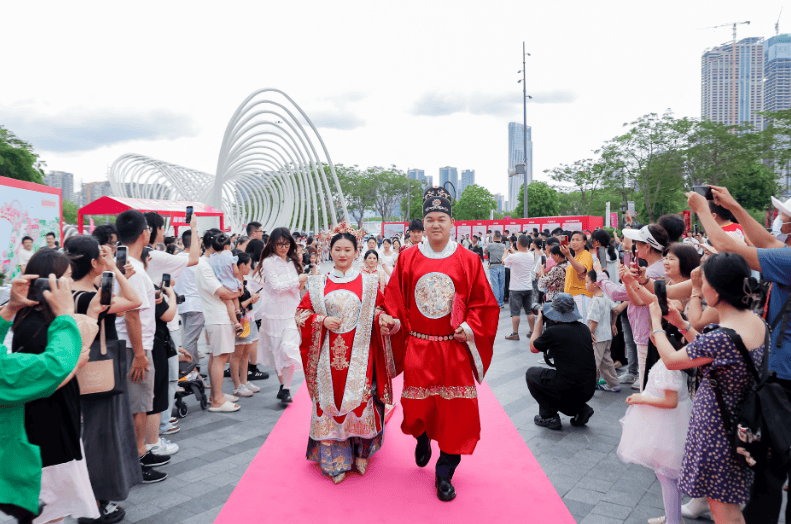 近年来,深圳还持续举行集体婚礼等各类文娱活动,打造深圳特色城市浪漫IP。福田区在全国首创的“福甜囍市”婚姻主题市集活动,围绕“婚姻+文化+经济+慈善”总体目标,在助企、惠民、慈善以及增强文化自信等方面发力,倡导文明健康婚俗新风,将“福甜囍市”打造成全国知名的甜蜜IP。罗湖区启动罗湖婚庆消费节,以婚庆为主题串联罗湖各大时尚产业,如服装、珠宝、家居、汽车、婚庆服务等,打造系列浪漫舒适的消费体验,为地方区域时尚消费注入新动能。