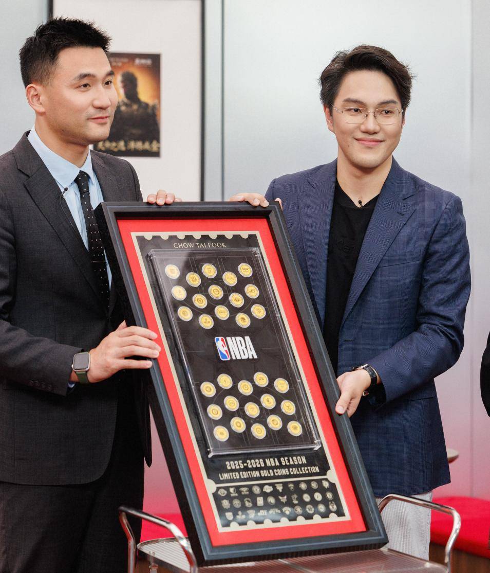 左为NBA体育文化发展(北京)有限责任公司副总裁 童开申先生右为周大福珠宝集团首席数码官 张宏光先生