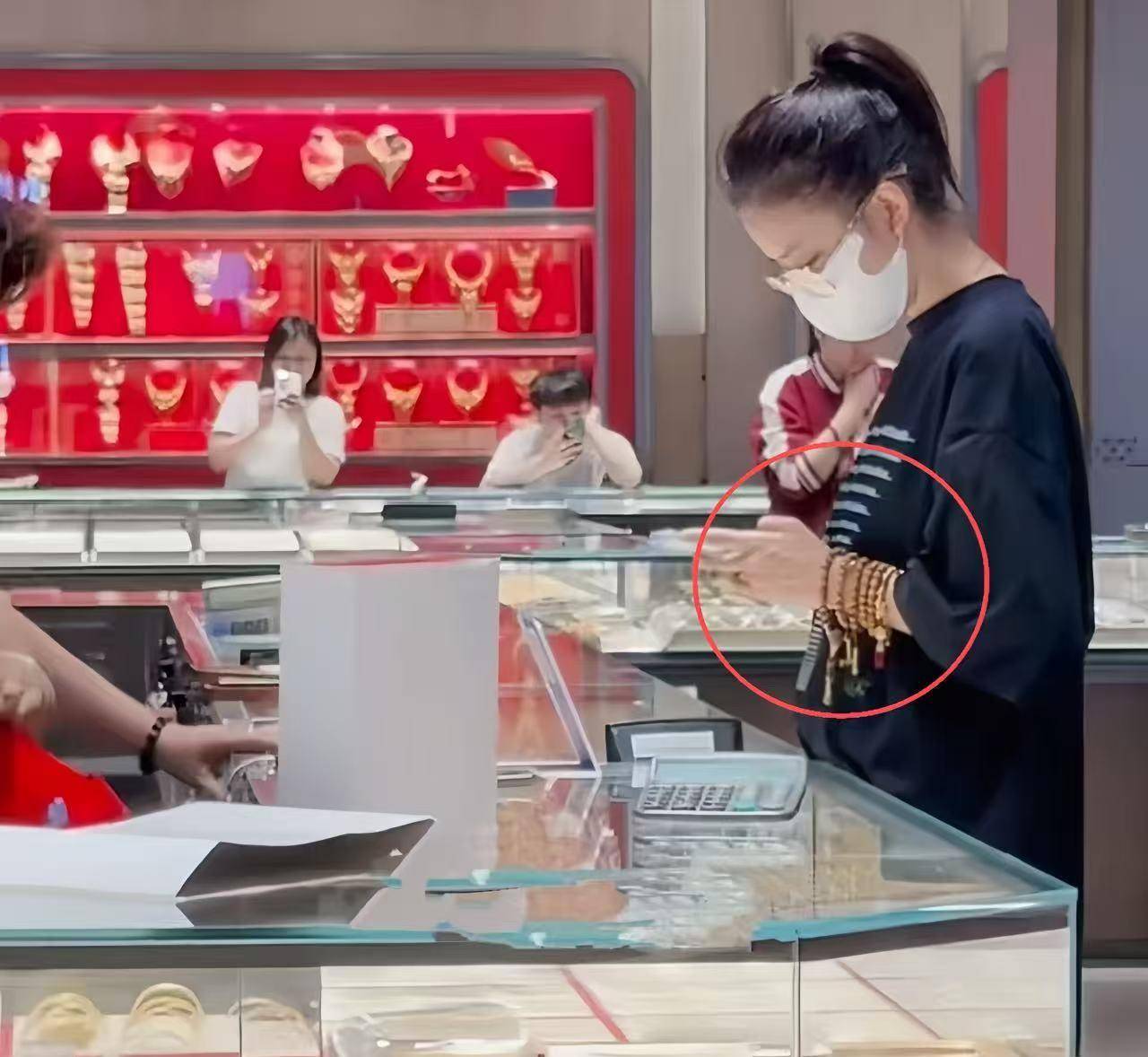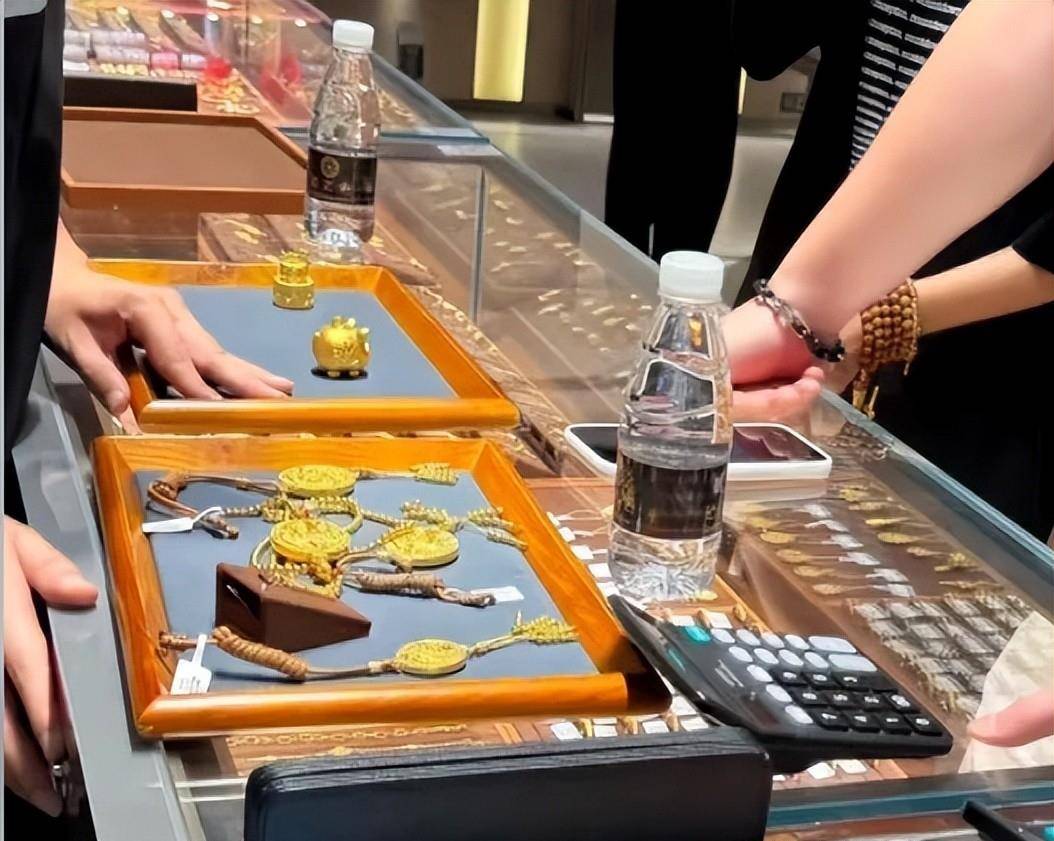 她在金饰柜台前驻足良久,手腕上已戴着好伟德国际victor1946几串手链和一条金链子。她认真挑选,最终选了两大盘黄金饰品,有小金猪、项链和各种小挂件。在金价持续走高的当下,这样“扫货”的架势,大概也只有明星能如此从容。